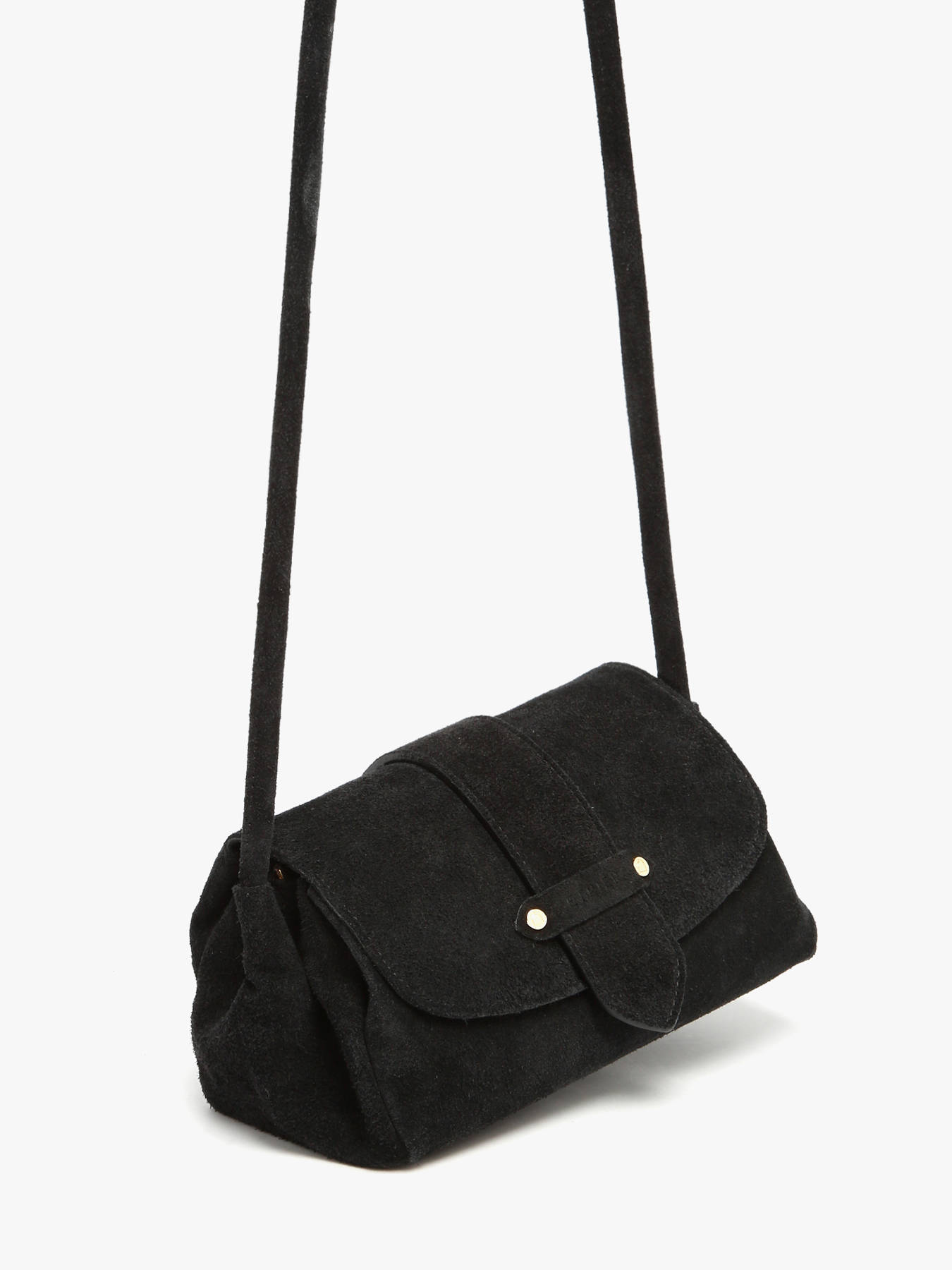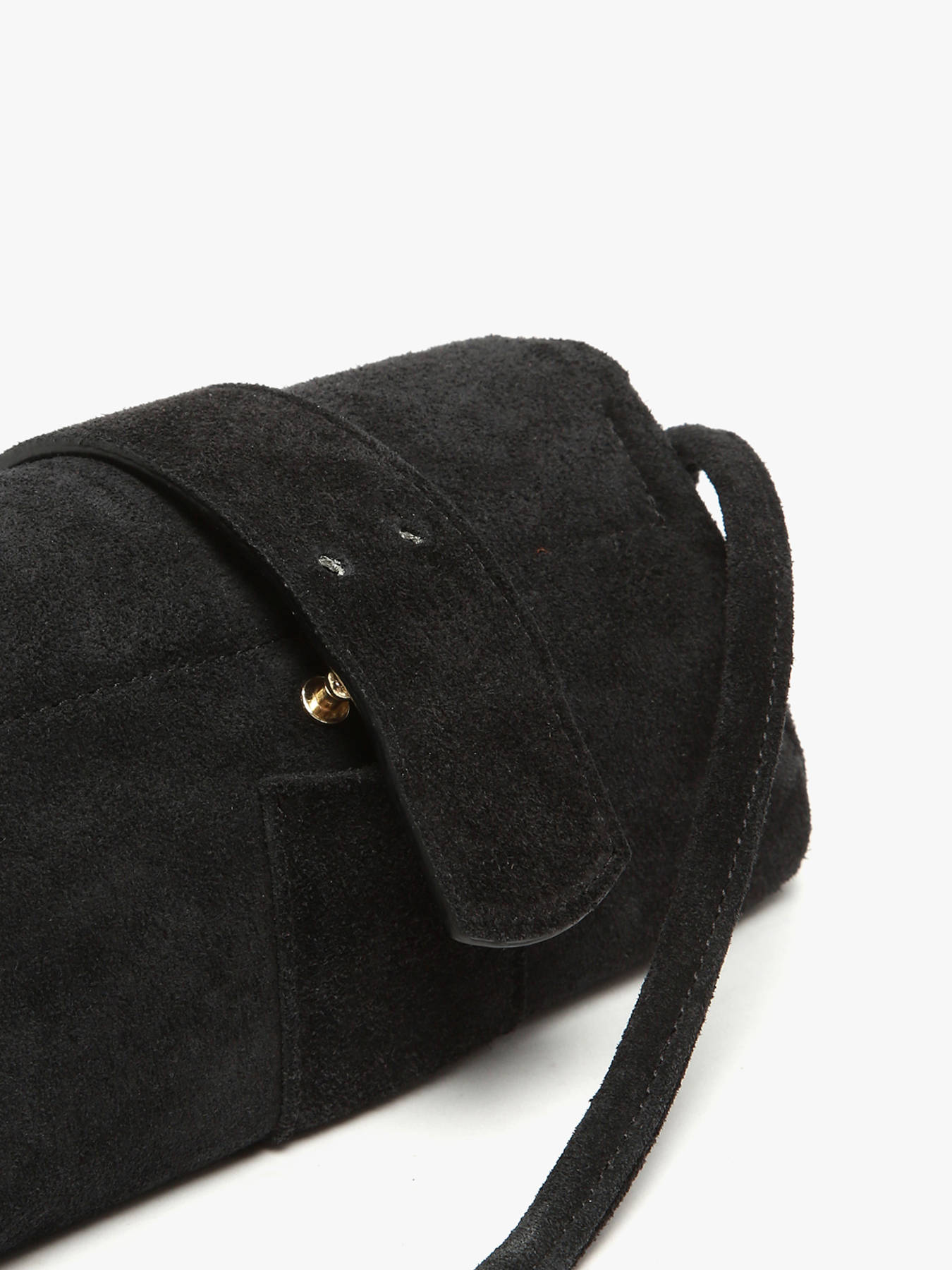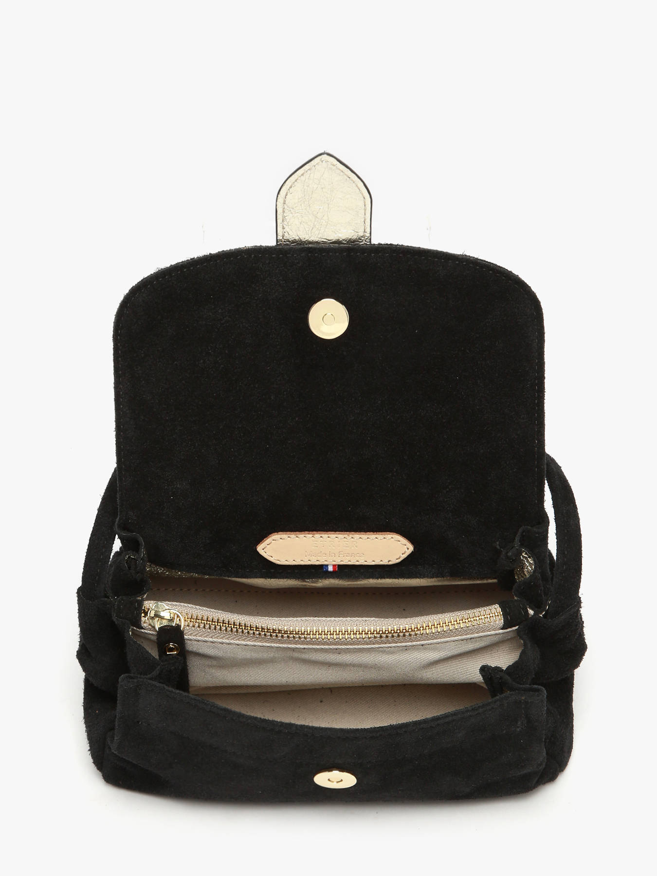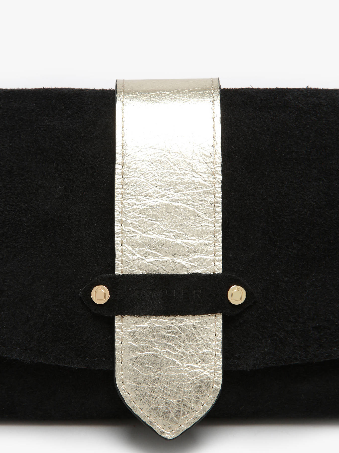 Le sac porté bandoulière AGNES par ETRIER est conçu en cuir velours italien, offrant une texture douce et raffinée. Ce modèle est présenté ici en taille S et se ferme par un rabat doté d'un bouton-pression aimanté. Il existe également en taille M pour celles et ceux qui souhaitent une contenance plus généreuse. Le sac est agrémenté d'une languette réversible, composée d'une face dorée et d'une face en cuir assortie au reste du sac. Elle se fixe aisément grâce à deux boutons de col et se glisse dans une poche arrière prévue à cet effet.